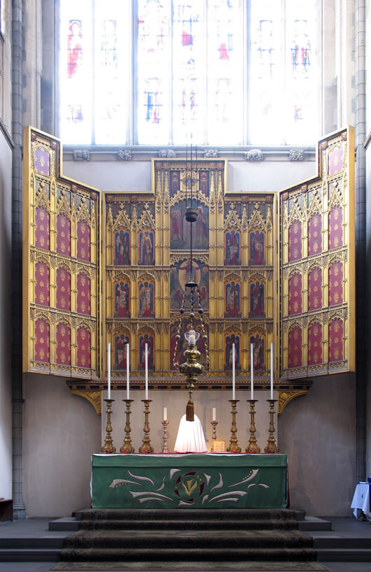 The Stations of the Cross are by Alois de Beule of Ghent (1861-1935). They are plaster casts of originals in wood.